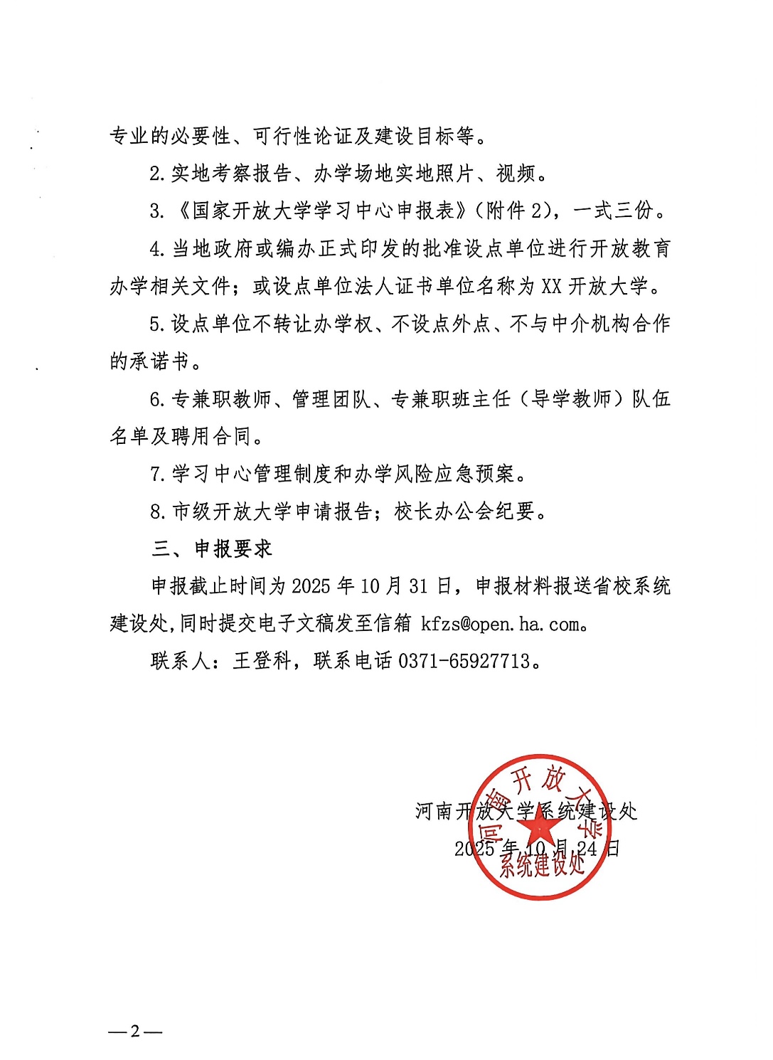 关于河南开放大学2026年春季学期申报新增系统内学习中心的通知